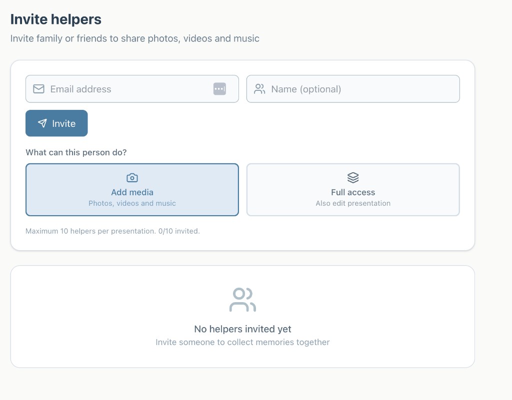 With The Last Farewell, no one needs to be technical. Everyone can contribute via a simple link. You keep control over the end result.